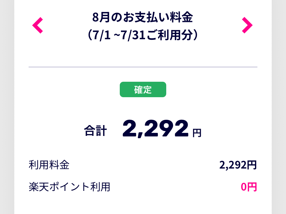 👇楽天モバイルに移行してから月々の支払いがこんなに安くなりました!